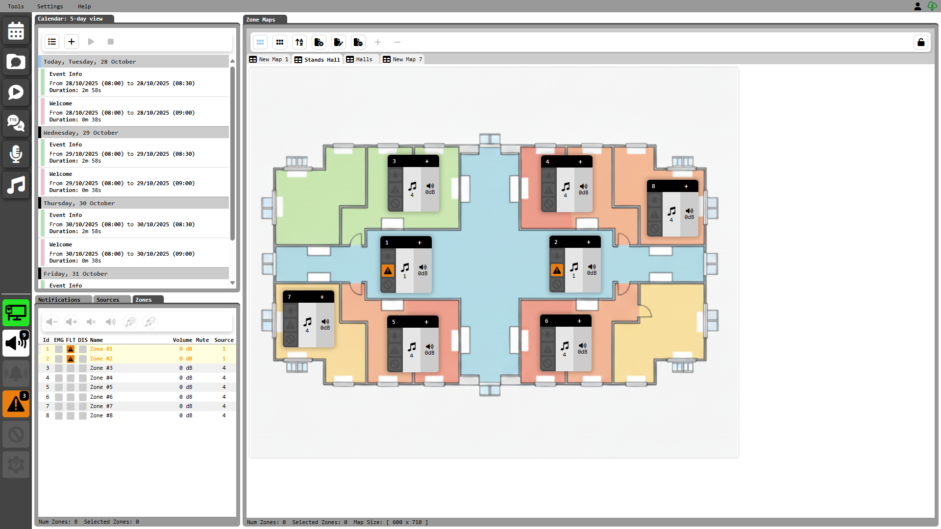 EVAC Control è una piattaforma di gestione e monitoraggio per il controllo locale dei sistemi di comunicazione al pubblico e di evacuazione vocale NEO+ e NEO EN 54.